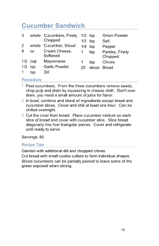 3 Cut the crust from bread. Place cucumber mixture on each